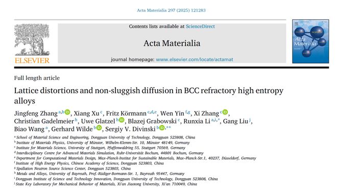 东莞理工学院《Acta Materialia》:揭示Co在BCC难熔高熵合金中的