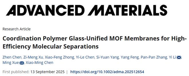 中山大学薛铭教授、李意副教授AM:熔融淬火技术!新型自修复MOF膜实现高效分子分